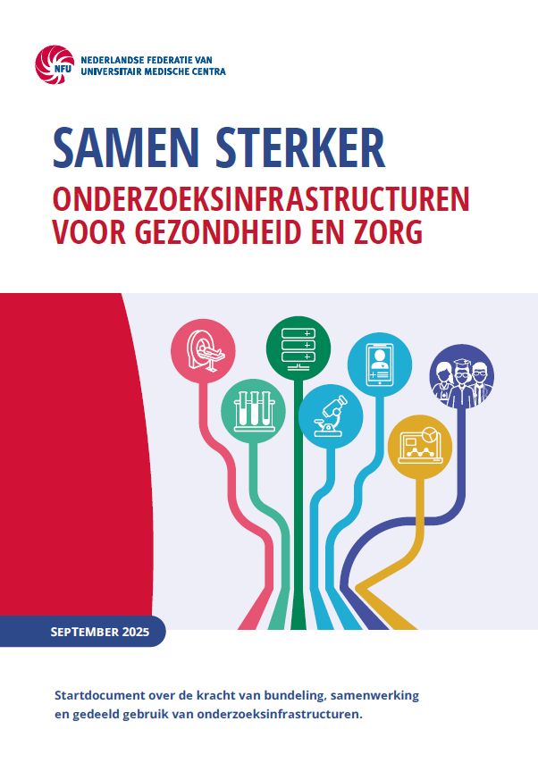 De zeven umc’s voelen zich gezamenlijk verantwoordelijk voor het duurzaam ontwikkelen én beschikbaar stellen van onderzoeksinfrastructuren. Dat betekent: bundelen waar het kan, concentreren waar het nodig is en samenwerken waar dat waarde toevoegt. Daardoor blijft kennis toegankelijk, continuïteit gewaarborgd en de impact groot.